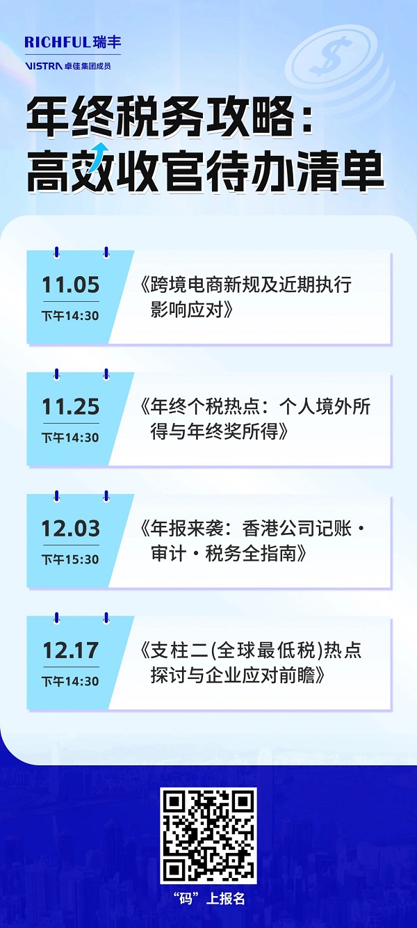 “年終稅務攻略:高效收官待辦清單”系列網絡研討會持續(xù)進行中,首場已圓滿落幕,干貨滿滿,好評如潮!第二場即將開啟,助你系統(tǒng)梳理關鍵議題,為2025年穩(wěn)健發(fā)展夯實基礎。