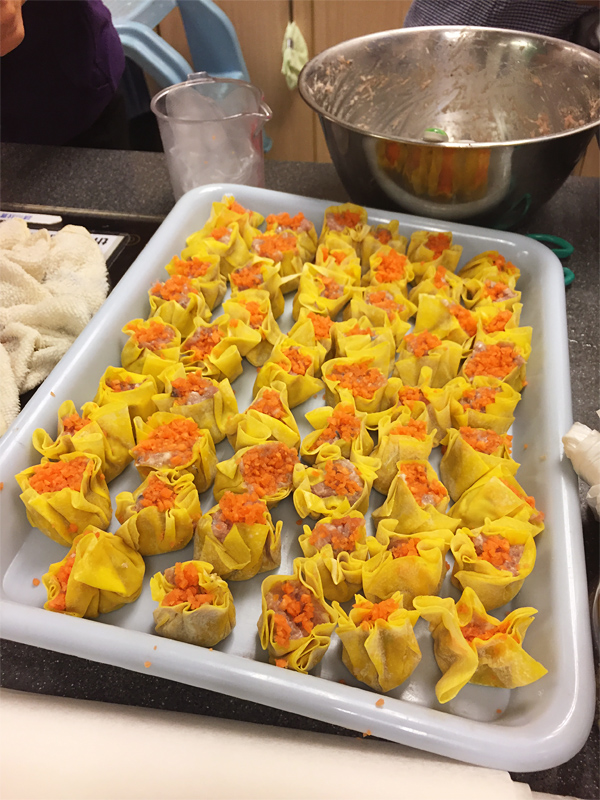 率先完成的就是點心中最有代表的燒賣,配上較為健康的餡料和紅蘿卜粒作點綴,非常適合長者們品嘗。