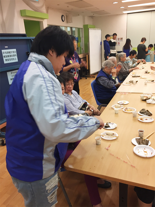 長者們都吃得津津有味,義工團都不忘為他們再次添上點心。