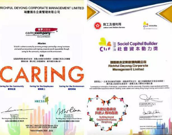 ? 榮獲香港社會服務(wù)聯(lián)會頒發(fā)的香港商界展關(guān)懷榮譽(yù)獎