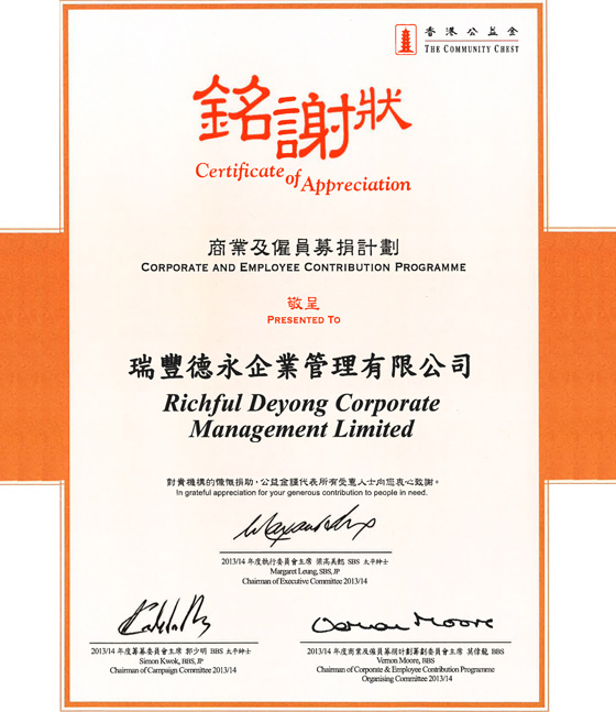 瑞豐德永一向熱心參與公益慈善活動(dòng),造福社群。瑞豐德永全力支持今次籌款活動(dòng),為香港公益金籌募善款,讓瑞豐德永展開(kāi)新里程的同時(shí),回饋社會(huì),資助本地社會(huì)福利服務(wù),與有需要人士分享成果。
