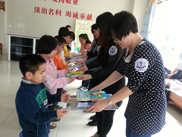 在公司經理的帶領下,我們來到了福州兒童福利院,福利院里的孩子大部分都是有一些缺陷的孩子。他們缺少父母的關愛,很多孩子甚至沒有上過學,對我們送來的學習用品他們都非常喜歡,有幾個孩子還照著書籍念出了認識的文字。