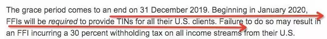 所有美國公民、美國綠卡持有人,以及常住美國的人士注意了:從2019年12月31日開始,美國國稅局IRS,將最終結(jié)束其長期運行的《海外賬戶納稅法案》(FATCA“肥咖”條款)寬限期。寬限期一旦結(jié)束,只要你賬戶符合“美國人身份”(后文有詳細(xì)解讀),就必須提供美國稅號(TIN),海外賬戶被查出沒有申報,除了會面臨高額罰款外,賬戶會被美國國稅局凍結(jié),甚至面臨刑事處罰!這意味著希望避免賬戶凍結(jié)的美國納稅人,現(xiàn)在只有不到一個星期的時間,來應(yīng)對可能的后果。