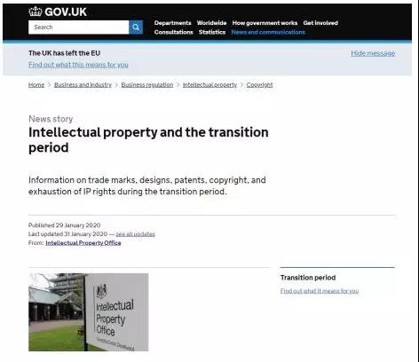 英國(guó)知識(shí)產(chǎn)權(quán)局于 2020 年 1 月 29 日發(fā)布并于 31 日更新了知識(shí)產(chǎn)權(quán)與過(guò)渡期通知。