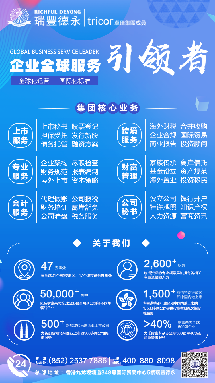 瑞豐德永集團直接代辦全球近30個屬地的離岸公司注冊。