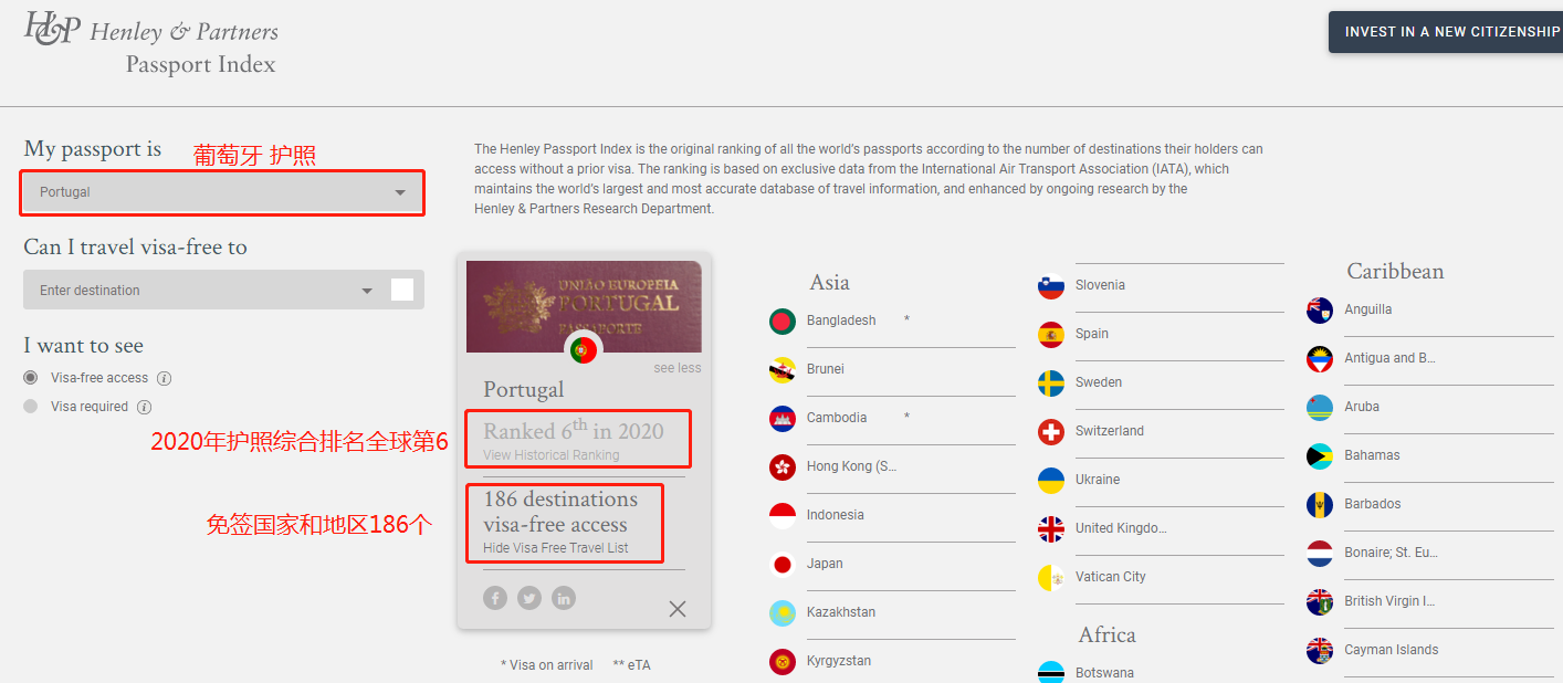 (亨利護(hù)照指數(shù)-葡萄牙護(hù)照相關(guān)指標(biāo))