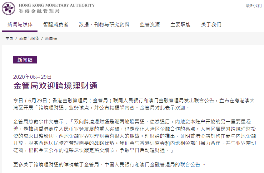 6月29日,市場翹首等待已久的“跨境理財通”終于出爐!根據(jù)官方發(fā)布消息,為促進粵港澳大灣區(qū)居民個人跨境投資便利化,中國人民銀行、香港金融管理局、澳門金融管理局決定在粵港澳大灣區(qū)開展“跨境理財通”業(yè)務試點。