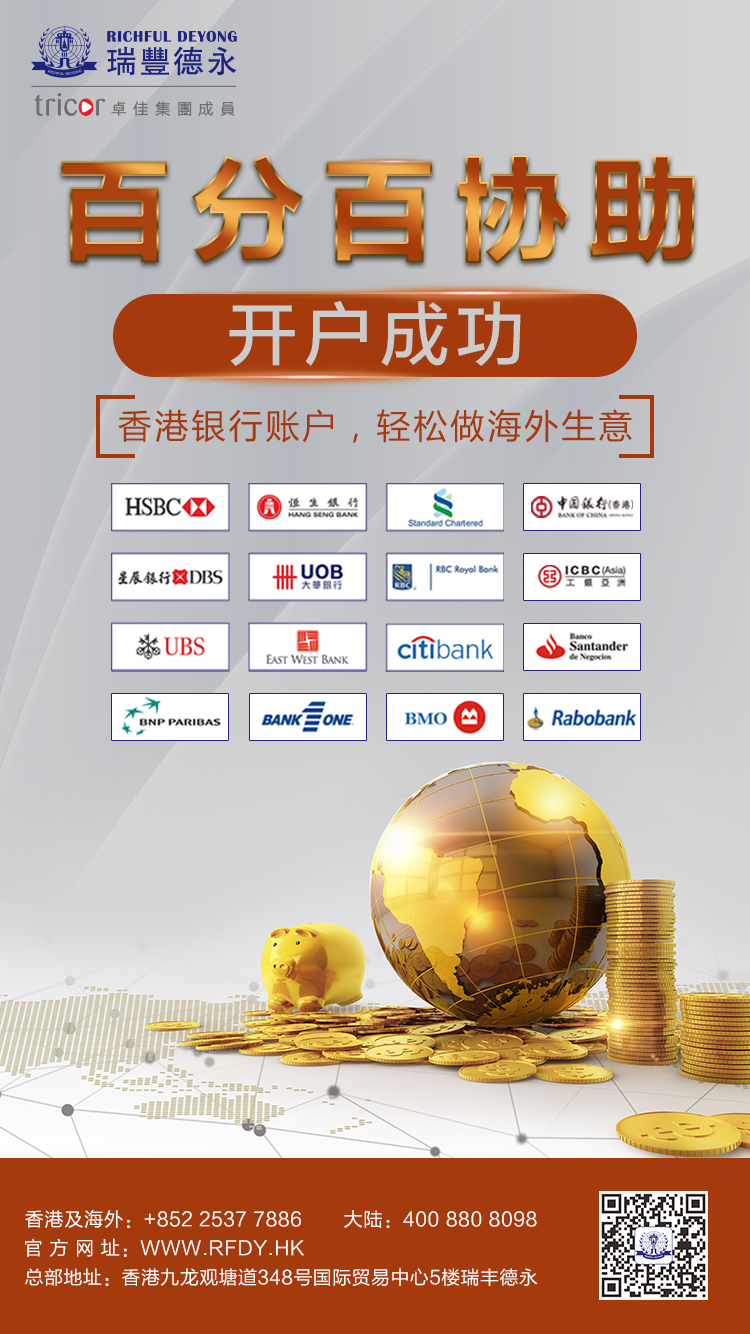瑞豐德永擁有多年開戶經驗及與香港銀行有良好合作關系,香港公司及離岸公司最快可以做到一兩星期就可以成功開戶,不僅能供各高凈值人士多地區(qū)、多家銀行的開戶選擇,還能為其提供全面的開戶前期審核指導服務,使大家境外銀行開戶更高效。