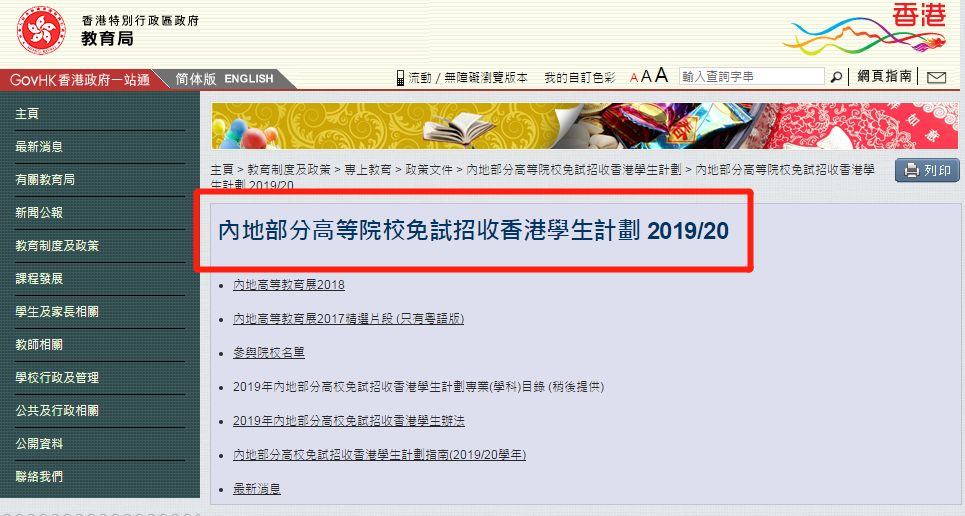 香港身份就讀內(nèi)地高??蓞⒓用庠囌猩?jì)劃。