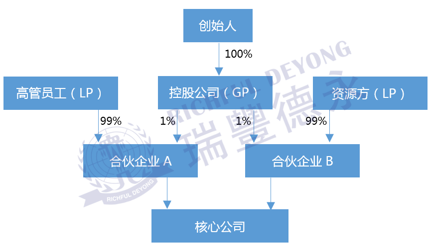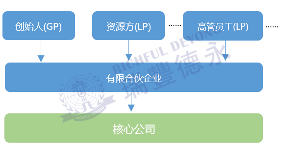 在有限合伙企業(yè)中,股東并不是直接持股擬設(shè)立的核心公司,而是先由股東搭建有限合伙企業(yè)作為持股平臺(tái),再由持股平臺(tái)作為持有核心公司。