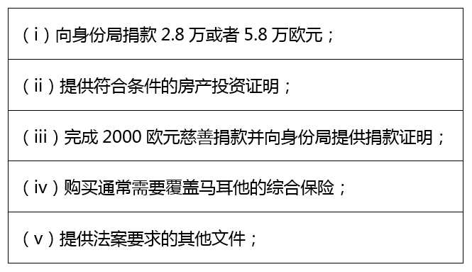 購(gòu)房金額:馬耳他主島35萬(wàn)歐元以上;戈佐島&馬耳他南部30萬(wàn)歐元以上。