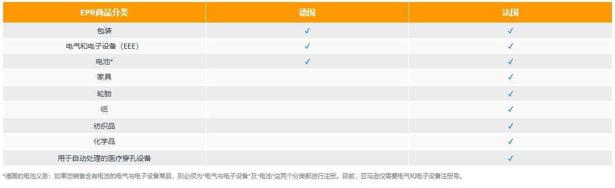 對(duì)于以下分類的商品,請(qǐng)賣家根據(jù)所銷售的產(chǎn)品對(duì)號(hào)入座,注冊(cè)并向亞馬遜提供對(duì)應(yīng)商品分類的EPR注冊(cè)號(hào)。