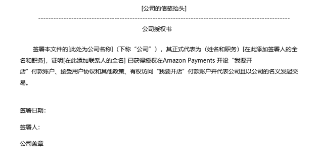 如首要聯(lián)系人非公司法人或者受益人,亞馬遜會(huì)要求賣家提供一份由公司法人授權(quán)首要聯(lián)系● 人實(shí)際運(yùn)營(yíng)該賬戶的授權(quán)函。文件要求如下: