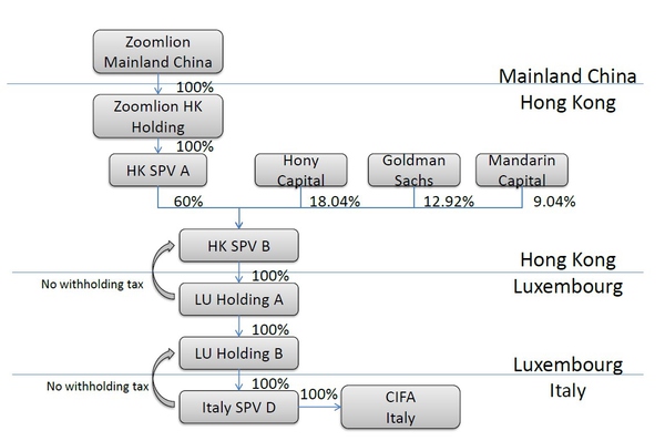 1. HK中有3個(gè)投資方進(jìn)入,Zoomlion HK Holding和 HK SPV B的存在確保了不管投資方如何變動(dòng),香港往上到中國(guó)和香港向下到盧瑟堡的結(jié)構(gòu)不會(huì)受影響。