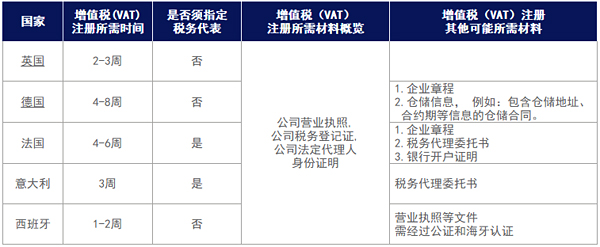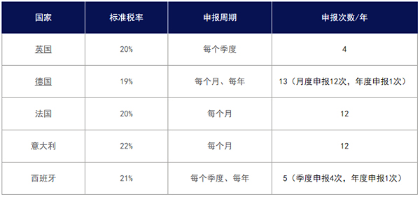 1.英德法意西增值稅(VAT)稅率、申報(bào)周期對照表