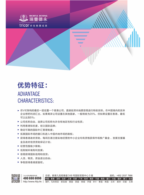 9、香港的國際地位顯著,后起的企業(yè)常用香港的知名度為企業(yè)加以包裝,在國際上爭取到一定的競爭優(yōu)勢;在香港成立公司,馬上可以分享到總體的國際形象和地位,提升公司自己的競爭能力。