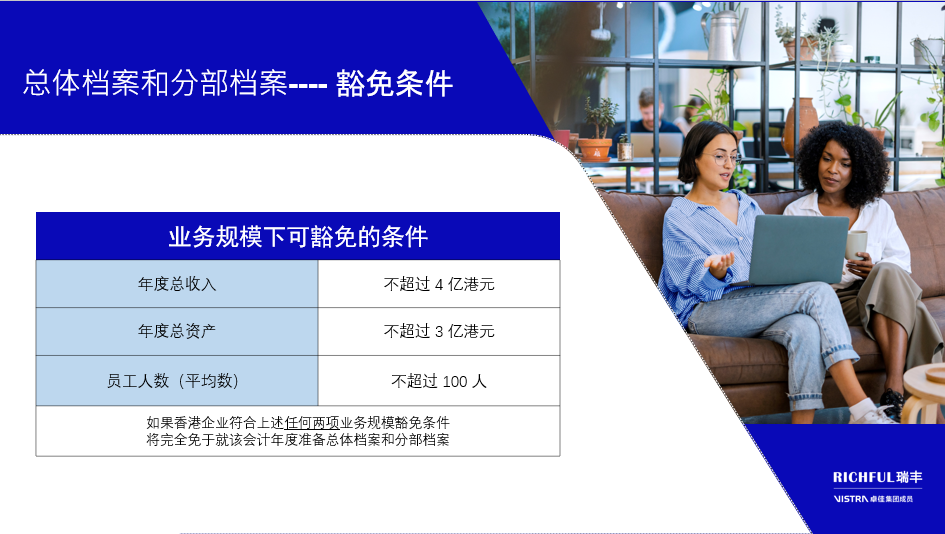 滿足以下任何兩個(gè)條件的香港實(shí)體,無需為會(huì)計(jì)期間編制總體檔案和分部檔案:
