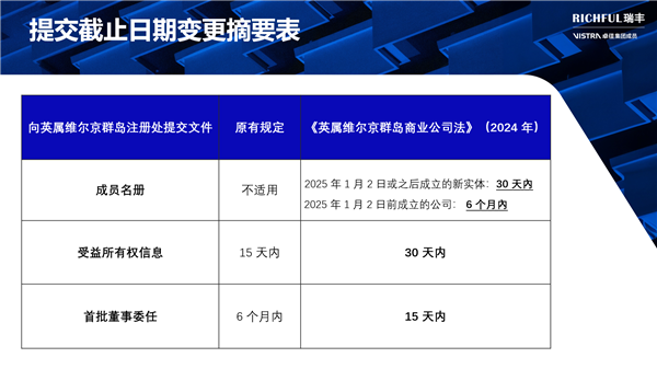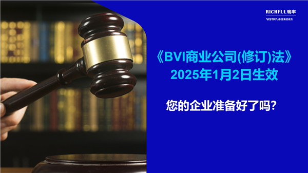 對(duì)于在BVI設(shè)有業(yè)務(wù)或計(jì)劃在該地區(qū)設(shè)立公司的企業(yè)來(lái)說(shuō),了解并準(zhǔn)備應(yīng)對(duì)這些變化至關(guān)重要。為了確保順利過(guò)渡到新法律框架,BVI的監(jiān)管機(jī)構(gòu)可能會(huì)提供詳細(xì)的指導(dǎo)方針和實(shí)施細(xì)節(jié)。RICHFUL瑞豐目前正在密切關(guān)注相關(guān)更新,積極確定提交資料的相關(guān)流程細(xì)節(jié),并將在接下來(lái)的幾周和幾個(gè)月內(nèi)與您保持持續(xù)溝通,以便于您及時(shí)調(diào)整運(yùn)營(yíng)和合規(guī)策略,確保符合新法律的要求。
