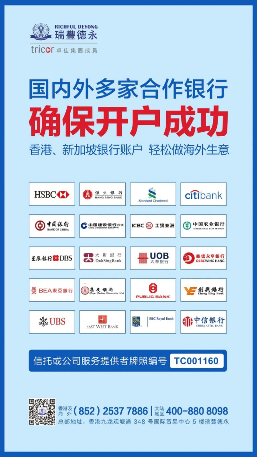 瑞豐德永(Richful Deyong)2008年始創(chuàng)于香港,系卓佳(Tricor)集團成員,是亞洲具有領先地位的專業(yè)服務機構,在全球21個國家/地區(qū)47個城市設有辦事處,擁有2500多名員工,服務超過30000多客戶,1300間香港聯(lián)交所上市公司,500間新加坡和馬來西亞上市公司,名列財富雜志500強企業(yè)超40%及眾多跨國知名公司。
