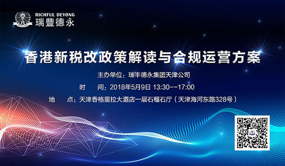 2018年5月9日,瑞豐德永將在天津舉辦“香港新稅改政策解讀與合規(guī)運營方案”專題研討會,特邀專家為您全方位解讀稅改新政,…