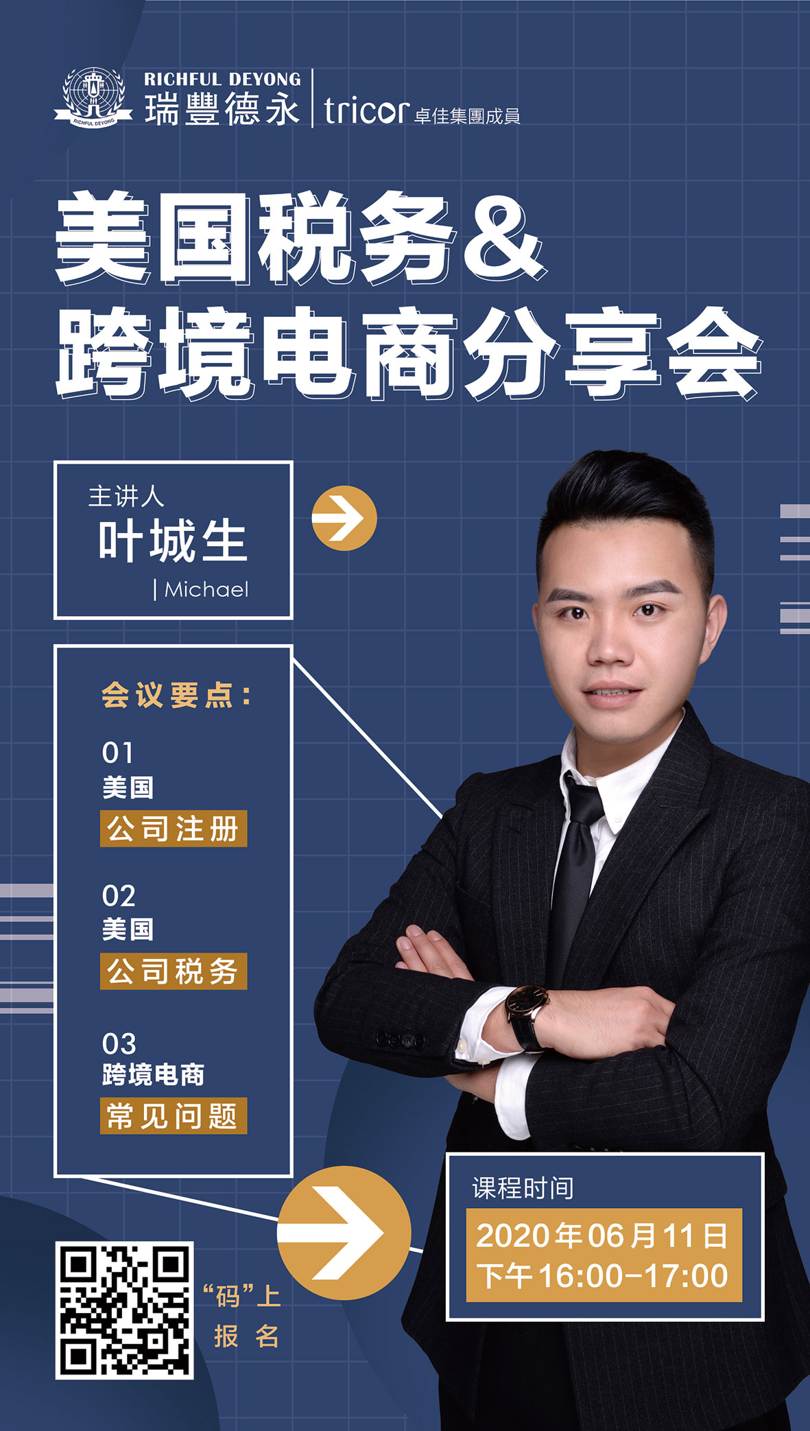 從公司注冊,到跨境電商業(yè)務運作,以及美國稅務知識等操作要點和注意事項,6月11日《美國稅務&跨境電商分享會》線上研討會已為您總結和準備好干貨,希望通過分享知識要點,幫您找業(yè)務運營與美國稅制的實際突破口,逐一解答您的各項疑惑。
