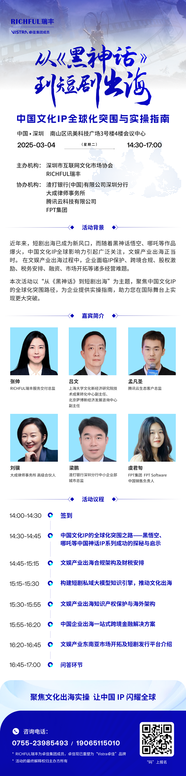 活動邀約 | 從《黑神話》到短劇出海:中國文化IP的全球化突圍與實操指南…