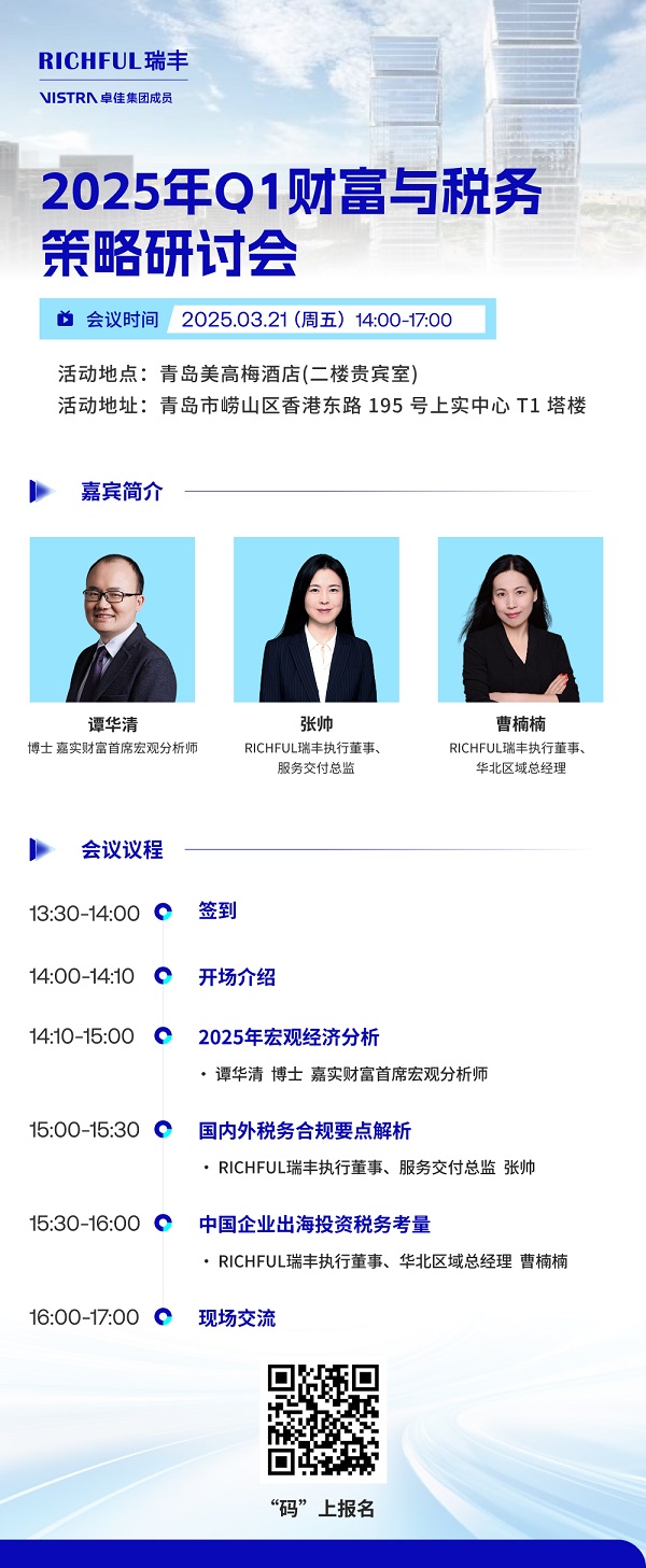 邀請函 | 3月21日 青島 | 2025年Q1財富與稅務(wù)策略研討會…